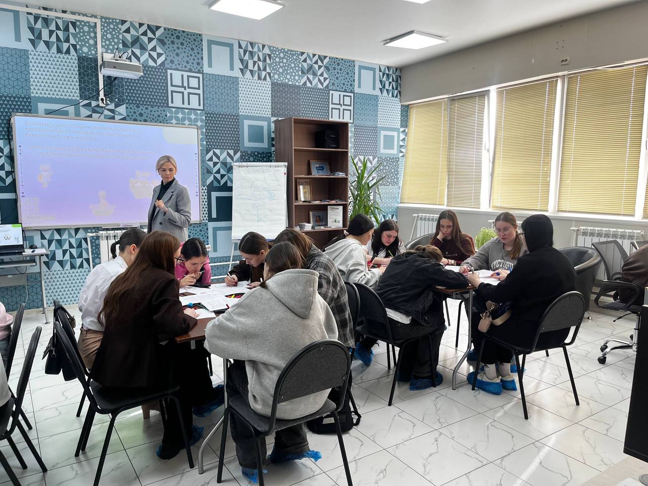Студенты разыгрывали проблемные педагогические ситуации и объясняли, какие сформированные профессиональные компетенции помогают эффективно справляться с подобными задачами в работе воспитателя. Формат получился живым и вовлекающим — с обсуждениями и разбором реальных кейсов.